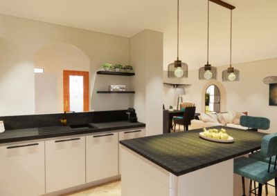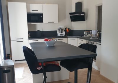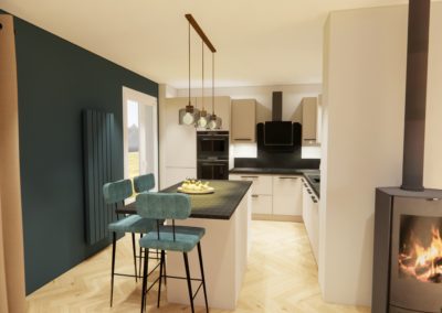 Notre cliente souhaitait donner une touche beaucoup plus moderne à sa future maison tout en gardant ses meubles.