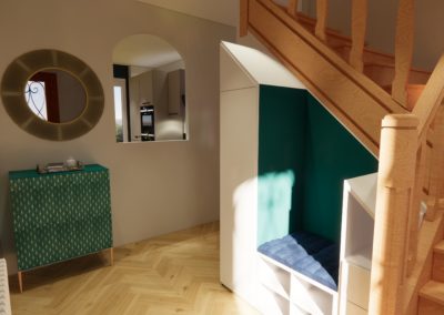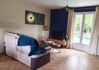 Le choix s’est porté sur des couleurs neutres en ne mettant de la couleur que sur un seul mur avec quelques éléments de décoration et de nouveaux meubles.